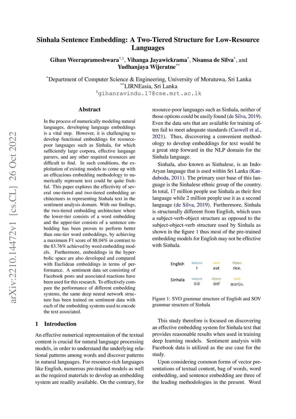 Sinhala Sentence Embedding: A Two-Tiered Structure for Low-Resource