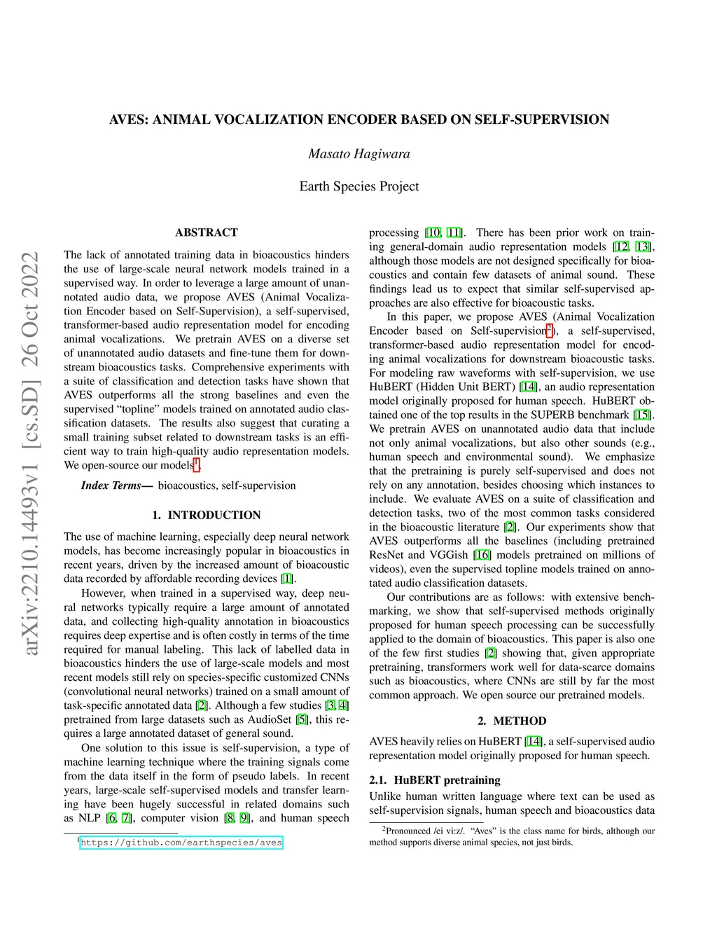 AVES: Animal Vocalization Encoder based on Self-Supervision
