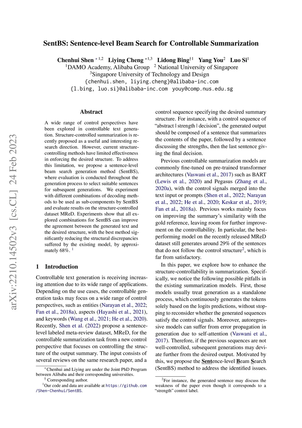 SentBS: Sentence-level Beam Search for Controllable Summarization