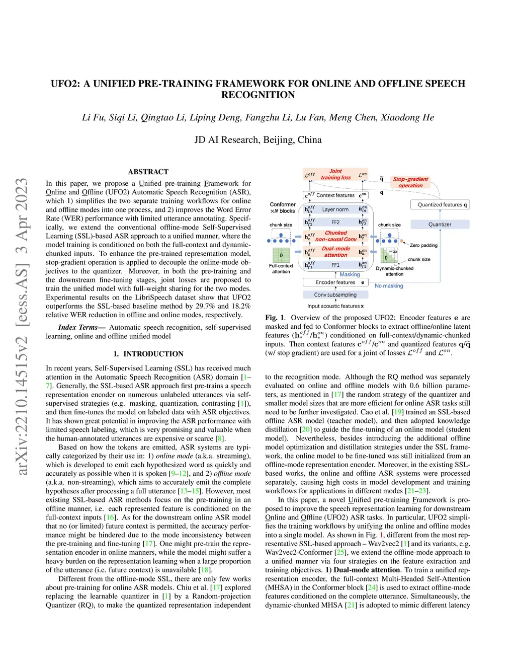 UFO2: A unified pre-training framework for online and offline speech