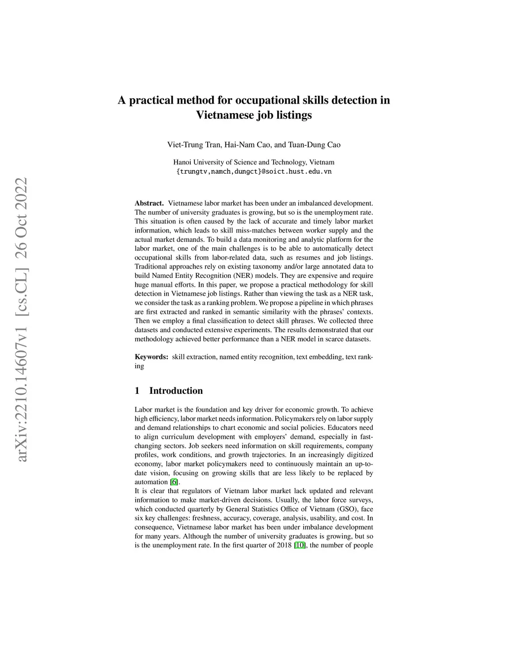 A practical method for occupational skills detection in Vietnamese job