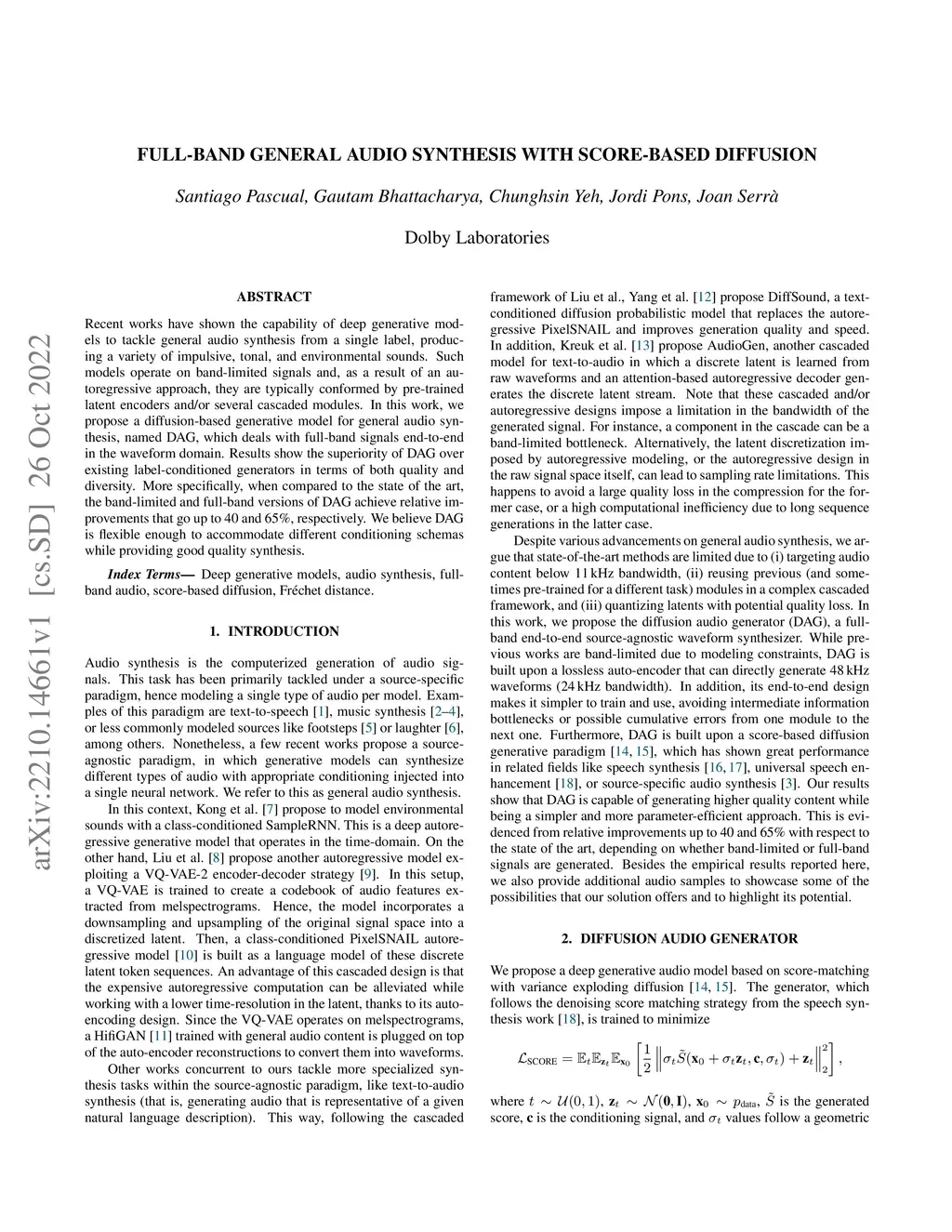 Full-band General Audio Synthesis with Score-based Diffusion
