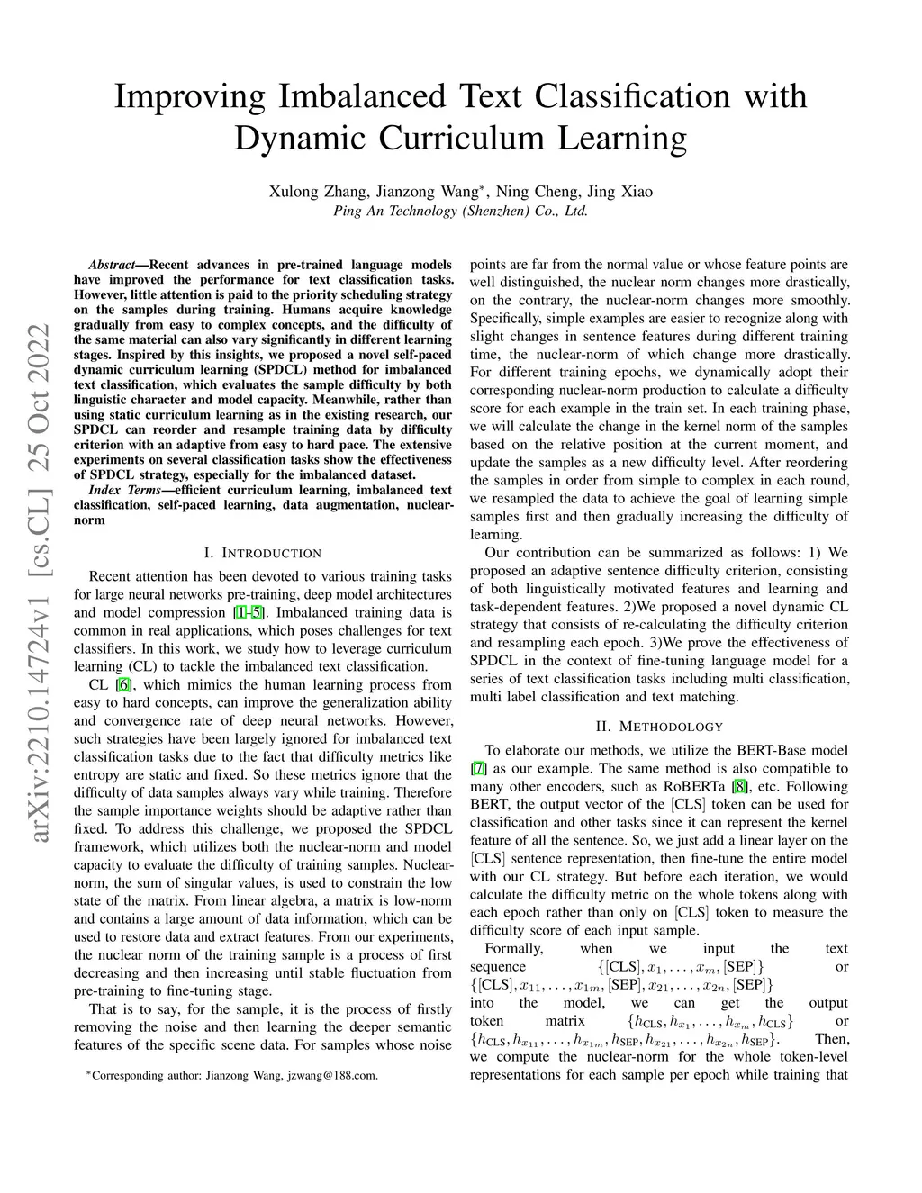 Improving Imbalanced Text Classification with Dynamic Curriculum