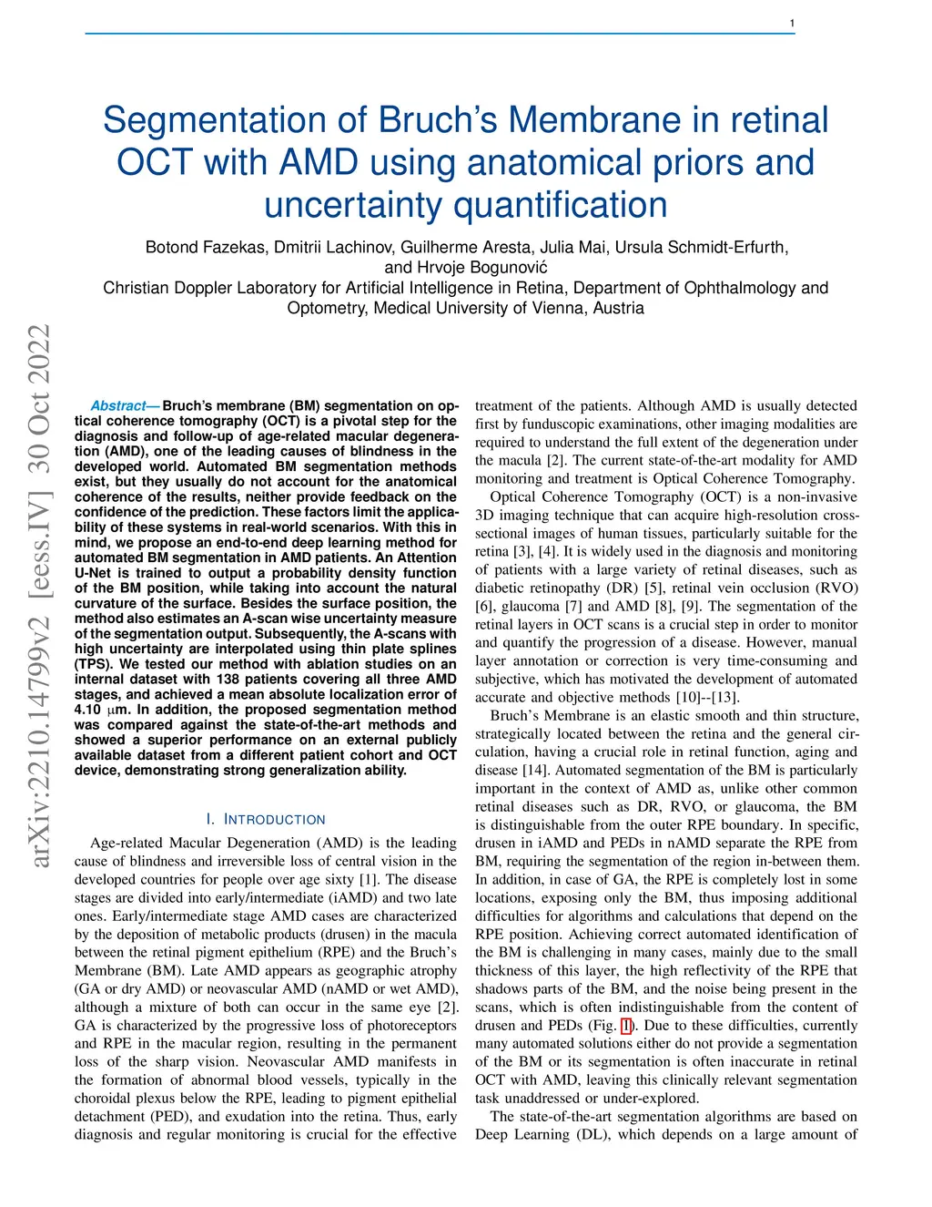 Segmentation of Bruch's Membrane in retinal OCT with AMD using anatomical priors and uncertainty quantification