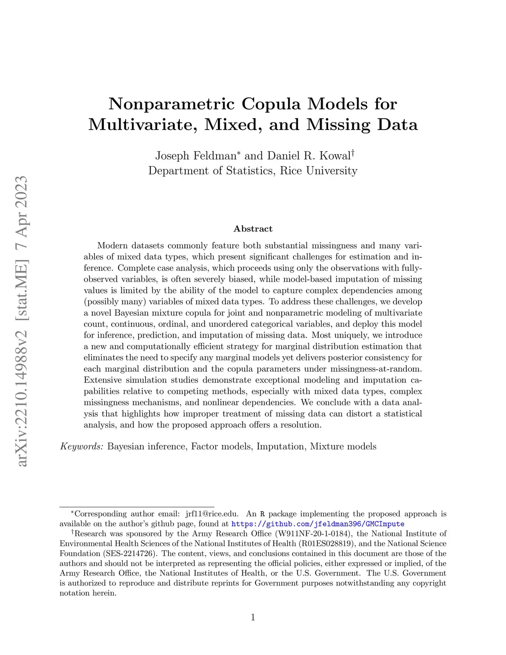 Nonparametric Copula Models for Multivariate, Mixed, and Missing Data
