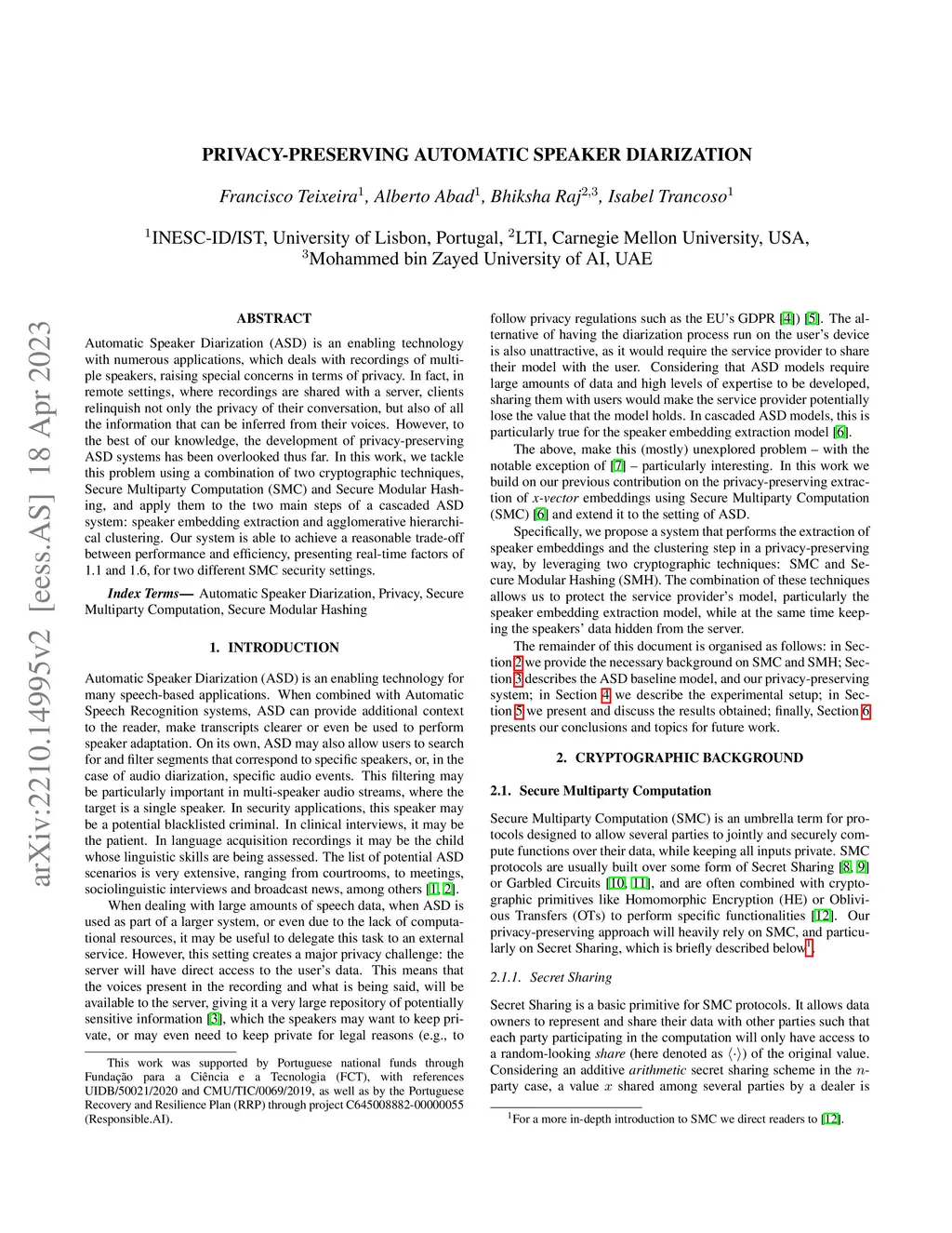 Automatic Speaker Diarization (ASD) is an enabling technology with numerous applications, which deals with recordings of multiple speakers, raising special concerns in terms of privacy. In fact, in remote settings, where recordings are shared with a server, clients relinquish not only the privacy of their conversation, but also of all the information that can be inferred from their voices. However, to the best of our knowledge, the development of privacy-preserving ASD systems has been overlooked thus far. In this work, we tackle this problem using a combination of two cryptographic techniques, Secure Multiparty Computation (SMC) and Secure Modular Hashing, and apply them to the two main steps of a cascaded ASD system: speaker embedding extraction and agglomerative hierarchical clustering. Our system is able to achieve a reasonable trade-off between performance and efficiency, presenting real-time factors of 1.1 and 1.6, for two different SMC security settings.