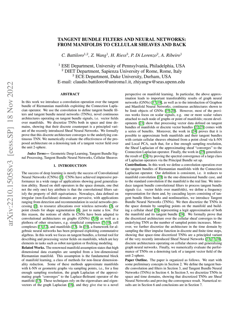 In this work we introduce a convolution operation over the tangent bundle of Riemannian manifolds exploiting the Connection Laplacian operator. We use the convolution to define tangent bundle filters and tangent bundle neural networks (TNNs), novel continuous architectures operating on tangent bundle signals, i.e. vector fields over manifolds. We discretize TNNs both in space and time domains, showing that their discrete counterpart is a principled variant of the recently introduced Sheaf Neural Networks. We formally prove that this discrete architecture converges to the underlying continuous TNN. We numerically evaluate the effectiveness of the proposed architecture on a denoising task of a tangent vector field over the unit 2-sphere.