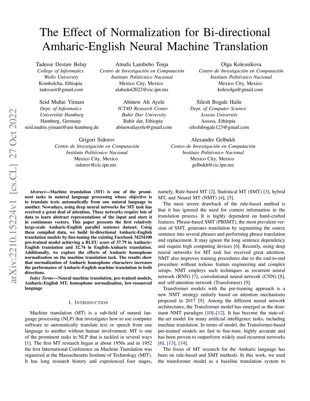 The Effect of Normalization for Bi-directional Amharic-English Neural