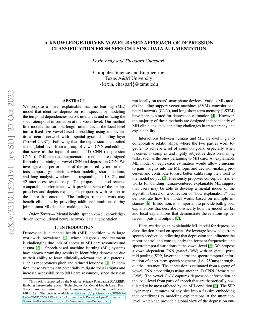 A knowledge-driven vowel-based approach of depression classification