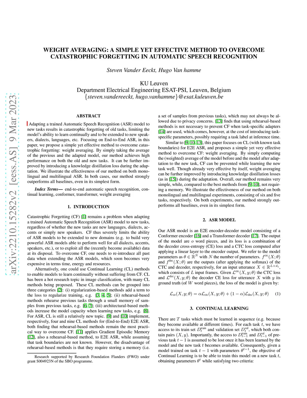 Adapting a trained Automatic Speech Recognition (ASR) model to new tasks results in catastrophic forgetting of old tasks, limiting the model's ability to learn continually and to be extended to new speakers, dialects, languages, etc. Focusing on End-to-End ASR, in this paper, we propose a simple yet effective method to overcome catastrophic forgetting: weight averaging. By simply taking the average of the previous and the adapted model, our method achieves high performance on both the old and new tasks. It can be further improved by introducing a knowledge distillation loss during the adaptation. We illustrate the effectiveness of our method on both monolingual and multilingual ASR. In both cases, our method strongly outperforms all baselines, even in its simplest form.