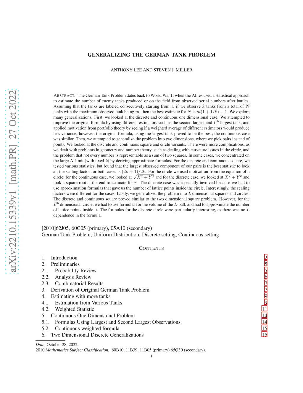 The German Tank Problem dates back to World War II when the Allies used a statistical approach to estimate the number of enemy tanks produced or on the field from observed serial numbers after battles. Assuming that the tanks are labeled consecutively starting from 1, if we observe tanks from a total of tanks with the maximum observed tank being , then the best estimate for is . We explore many generalizations. We looked at the discrete and continuous one dimensional case. We explored different estimators such as the \textsuperscript{th} largest tank, and applied motivation from portfolio theory and studied a weighted average; however, the original formula was the best. We generalized the problem in two dimensions, with pairs instead of points, studying the discrete and continuous square and circle variants. There were complications from curvature issues and that not every number is representable as a sum of two squares. We often concentrated on the large limit. For the discrete and continuous square, we tested various statistics, finding the largest observed component did best; the scaling factor for both cases is . The discrete case was especially involved because we had to use approximation formulas that gave us the number of lattice points inside the circle. Interestingly, the scaling factors were different for the cases. Lastly, we generalized the problem into dimensional squares and circles. The discrete and continuous square proved similar to the two dimensional square problem. However, for the \textsuperscript{th} dimensional circle, we had to use formulas for the volume of the -ball, and had to approximate the number of lattice points inside it. The formulas for the discrete circle were particularly interesting, as there was no dependence in the formula.