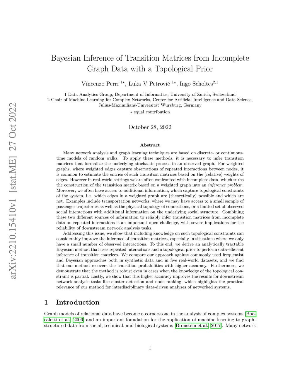 Bayesian Inference of Transition Matrices from Incomplete Graph Data