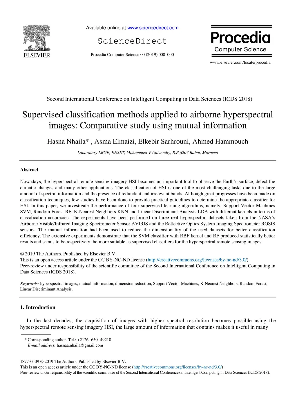Supervised classification methods applied to airborne hyperspectral