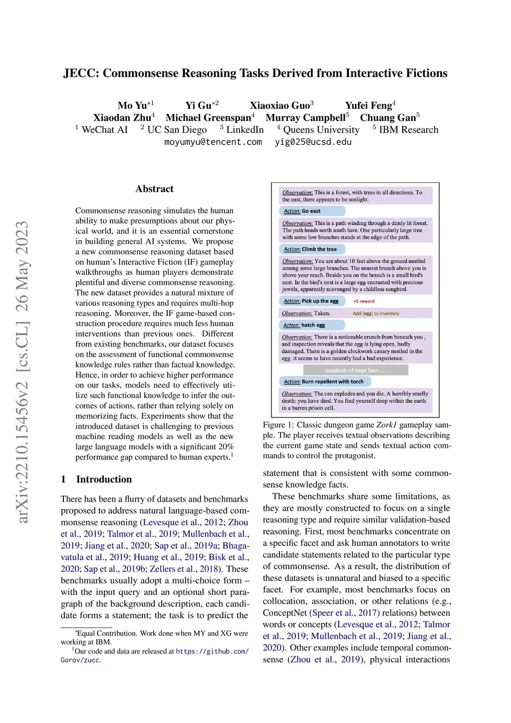JECC: Commonsense Reasoning Tasks Derived from Interactive Fictions