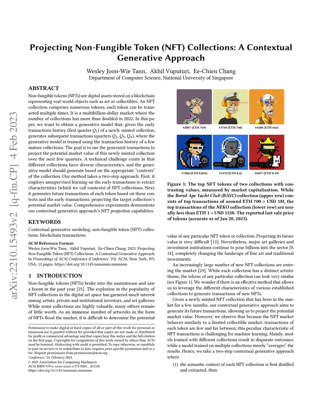 Projecting Non-Fungible Token (NFT) Collections: A Contextual Generative