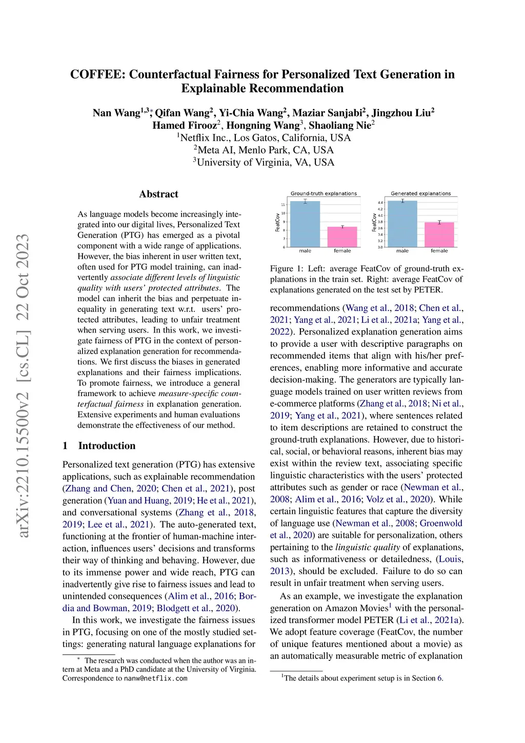 COFFEE: Counterfactual Fairness for Personalized Text Generation in
