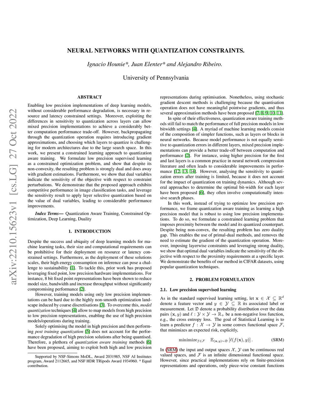 Neural Networks with Quantization Constraints