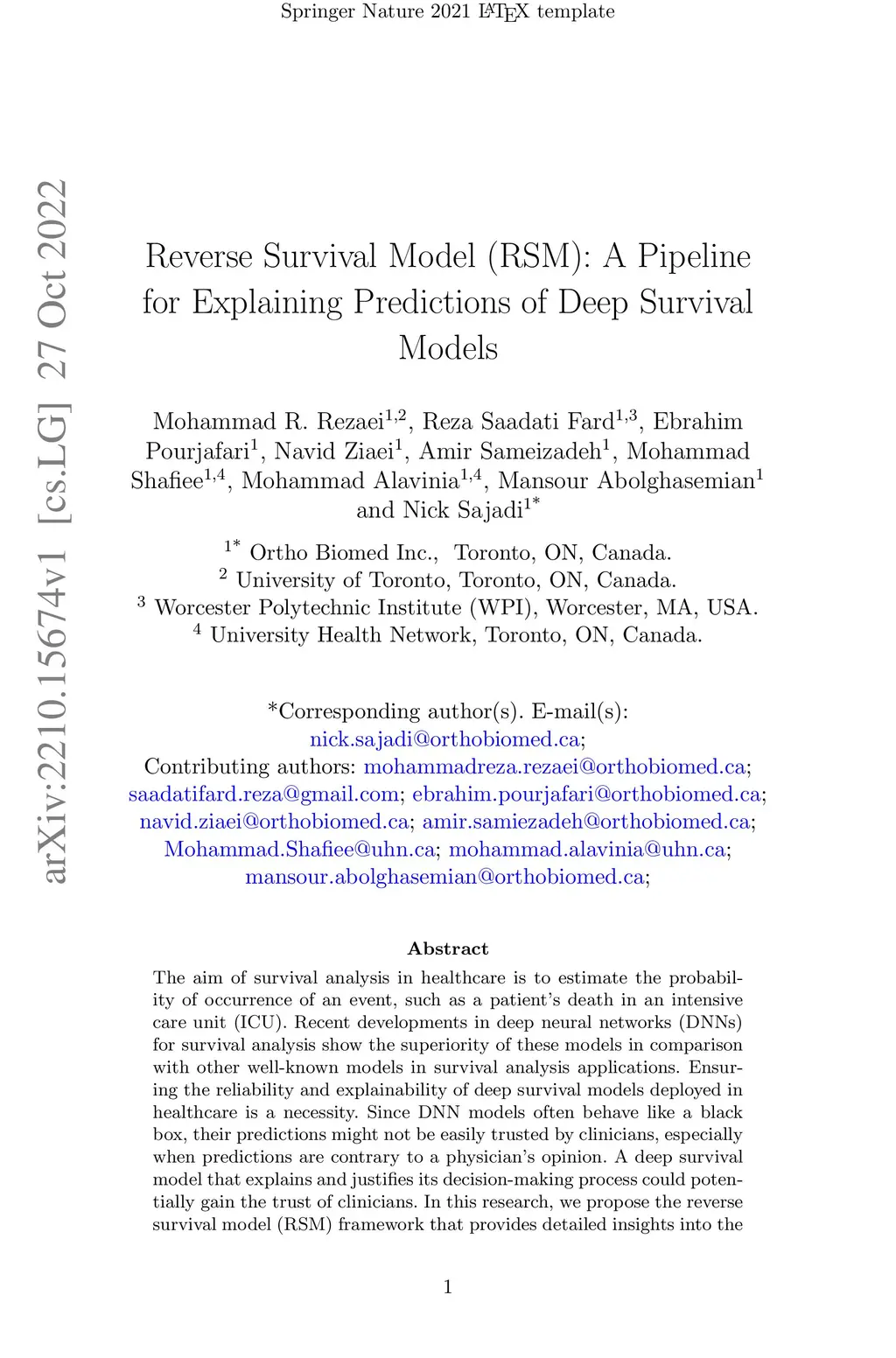 Reverse Survival Model (RSM): A Pipeline for Explaining Predictions of