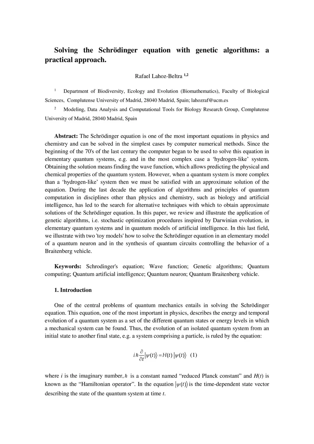 The Schrodinger equation is one of the most important equations in physics and chemistry and can be solved in the simplest cases by computer numerical methods. Since the beginning of the 70s of the last century the computer began to be used to solve this equation in elementary quantum systems, e.g. and in the most complex case a hydrogen-like system. Obtaining the solution means finding the wave function, which allows predicting the physical and chemical properties of the quantum system. However, when a quantum system is more complex than a hydrogen-like system then we must be satisfied with an approximate solution of the equation. During the last decade the application of algorithms and principles of quantum computation in disciplines other than physics and chemistry, such as biology and artificial intelligence, has led to the search for alternative techniques with which to obtain approximate solutions of the Schrodinger equation. In this paper, we review and illustrate the application of genetic algorithms, i.e. stochastic optimization procedures inspired by Darwinian evolution, in elementary quantum systems and in quantum models of artificial intelligence. In this last field, we illustrate with two toy models how to solve the Schrodinger equation in an elementary model of a quantum neuron and in the synthesis of quantum circuits controlling the behavior of a Braitenberg vehicle.