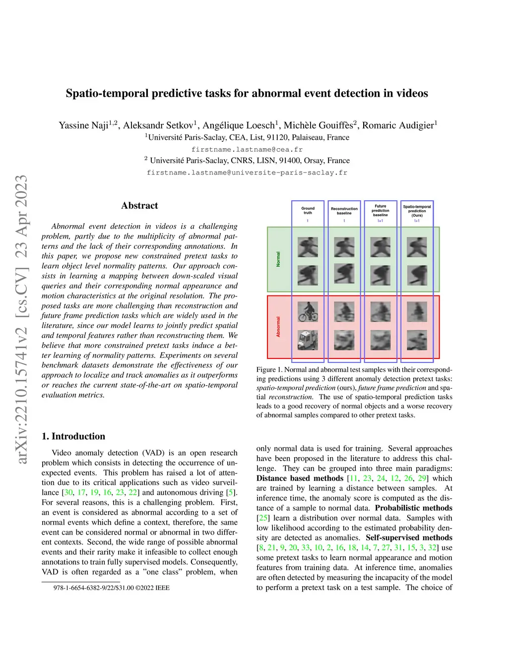 Spatio-temporal predictive tasks for abnormal event detection in videos