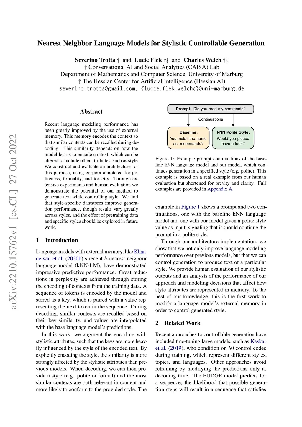 Nearest Neighbor Language Models for Stylistic Controllable Generation