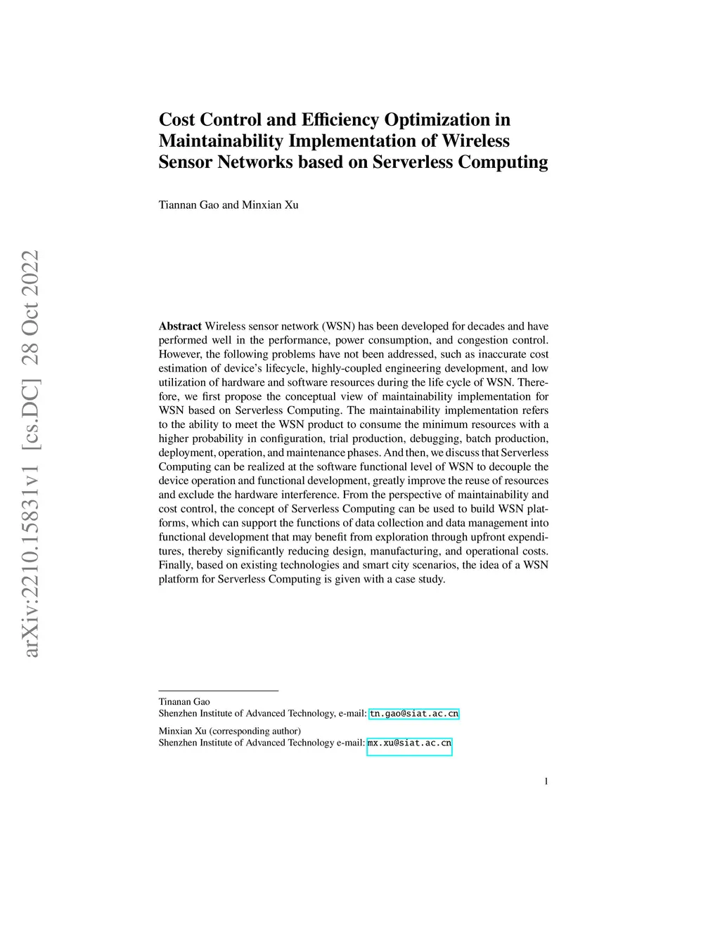 Implementation of Wireless Sensor Networks based on Serverless Computing