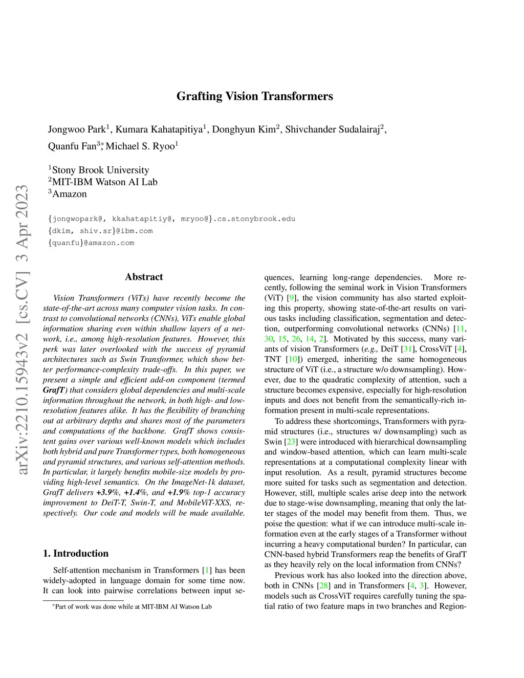 Grafting Vision Transformers