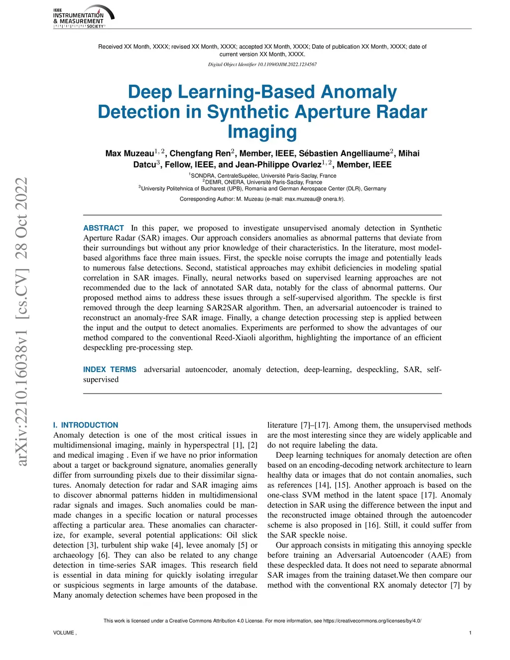 Deep Learning-Based Anomaly Detection in Synthetic Aperture Radar