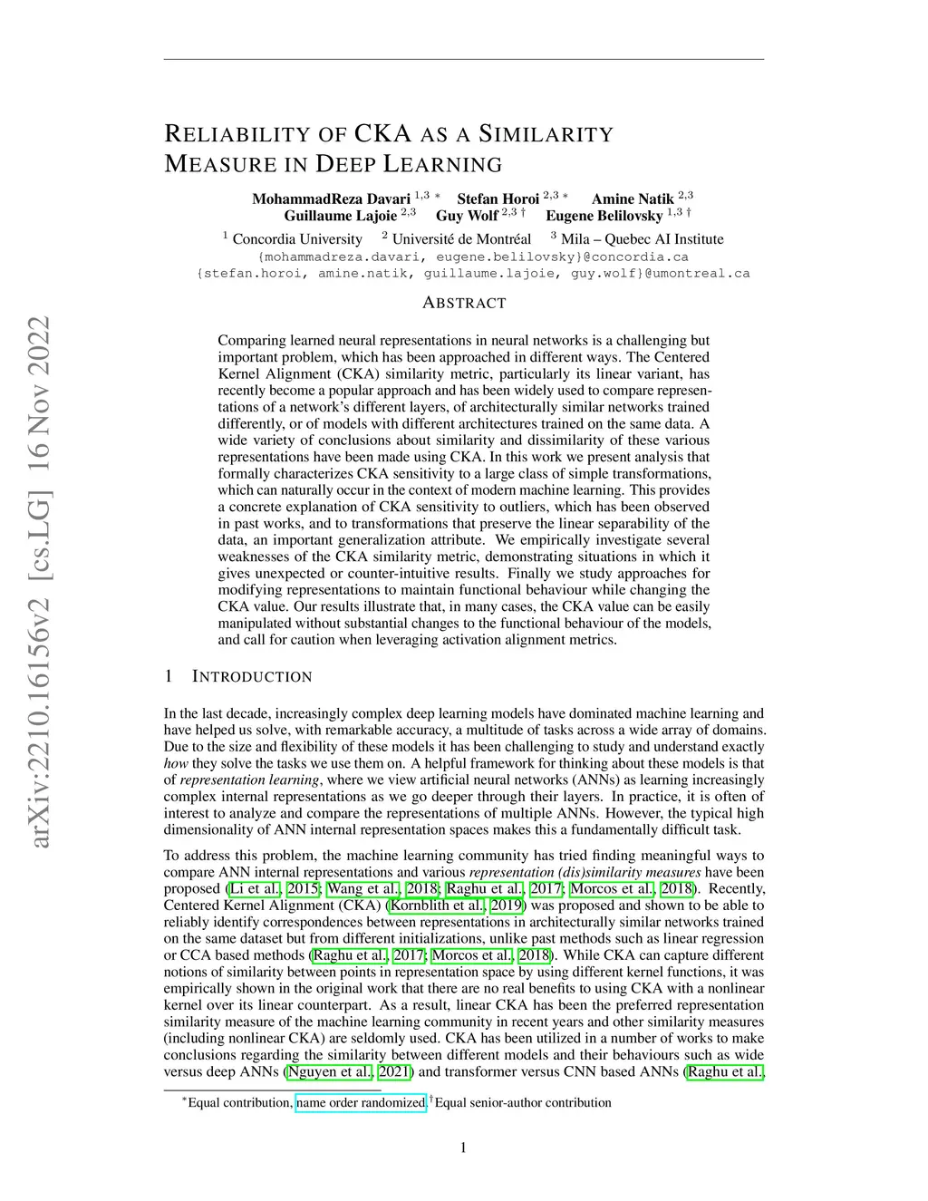 Reliability of CKA as a Similarity Measure in Deep Learning