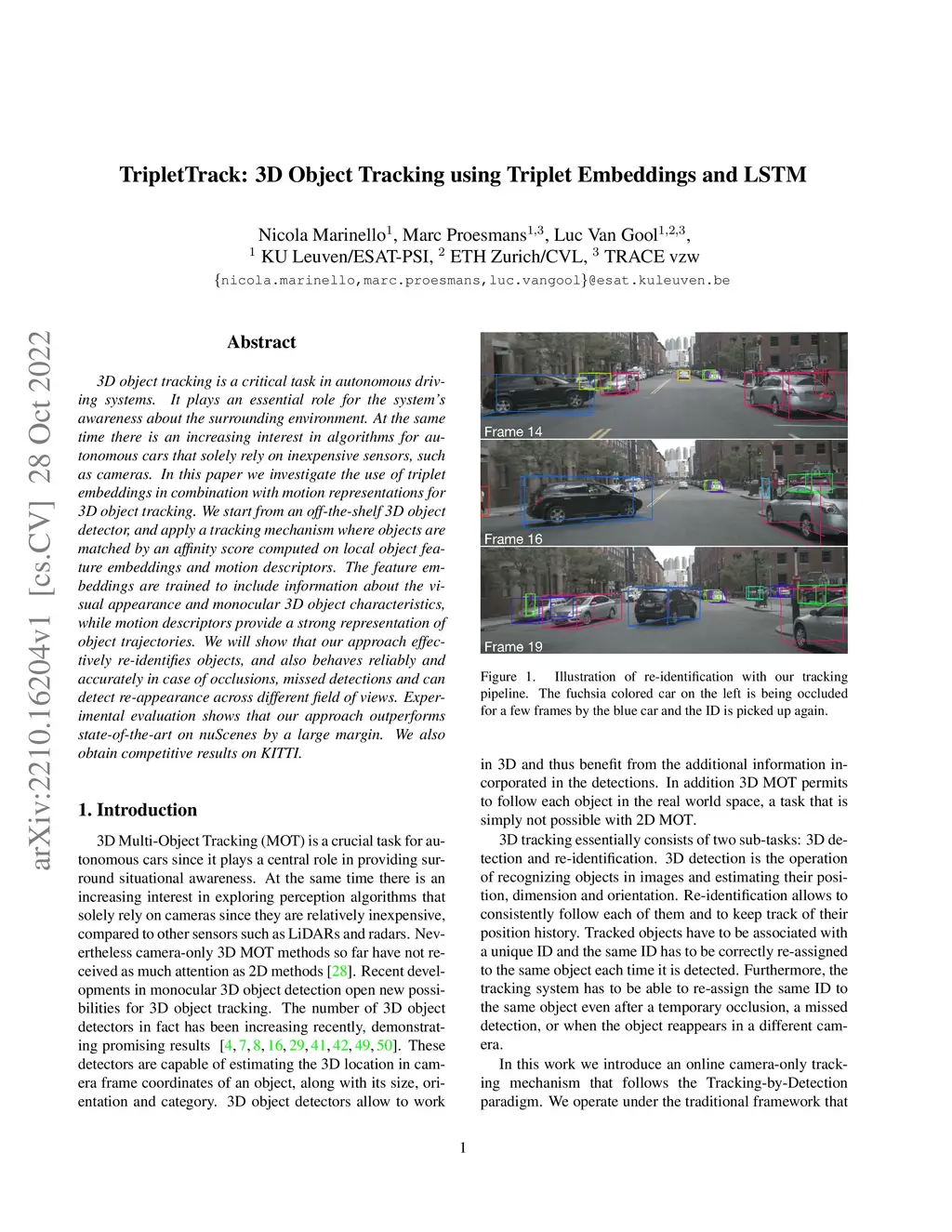 TripletTrack: 3D Object Tracking using Triplet Embeddings and LSTM