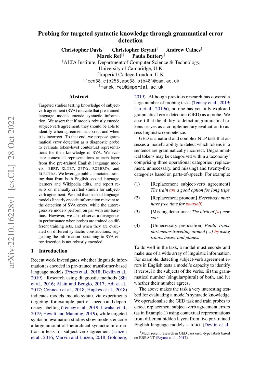 Probing for targeted syntactic knowledge through grammatical error