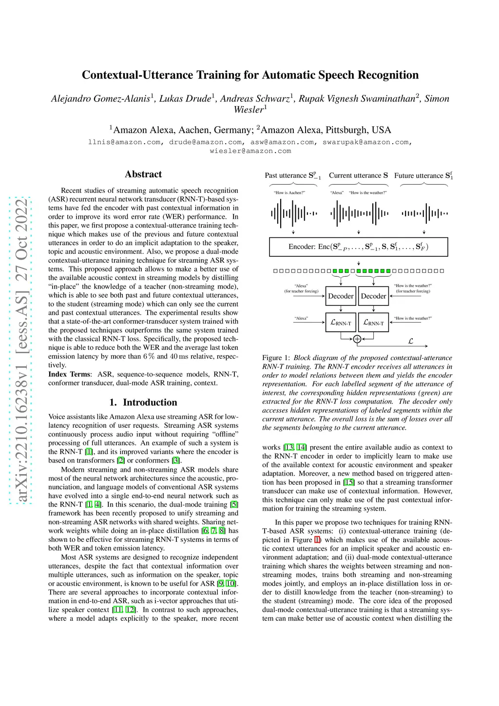 Contextual-Utterance Training for Automatic Speech Recognition
