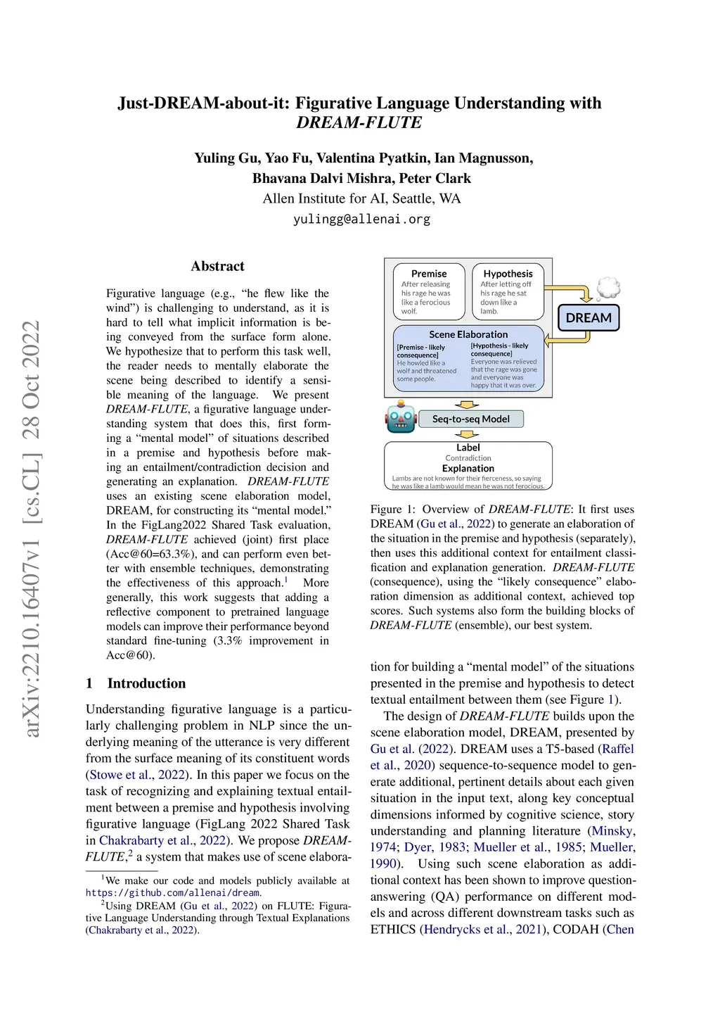 Just-DREAM-about-it: Figurative Language Understanding with DREAM-FLUTE