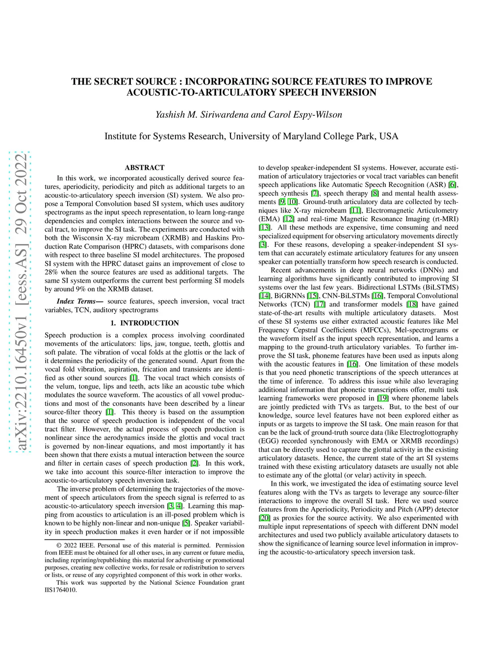 In this work, we incorporated acoustically derived source features, aperiodicity, periodicity and pitch as additional targets to an acoustic-to-articulatory speech inversion (SI) system. We also propose a Temporal Convolution based SI system, which uses auditory spectrograms as the input speech representation, to learn long-range dependencies and complex interactions between the source and vocal tract, to improve the SI task. The experiments are conducted with both the Wisconsin X-ray microbeam (XRMB) and Haskins Production Rate Comparison (HPRC) datasets, with comparisons done with respect to three baseline SI model architectures. The proposed SI system with the HPRC dataset gains an improvement of close to 28% when the source features are used as additional targets. The same SI system outperforms the current best performing SI models by around 9% on the XRMB dataset.