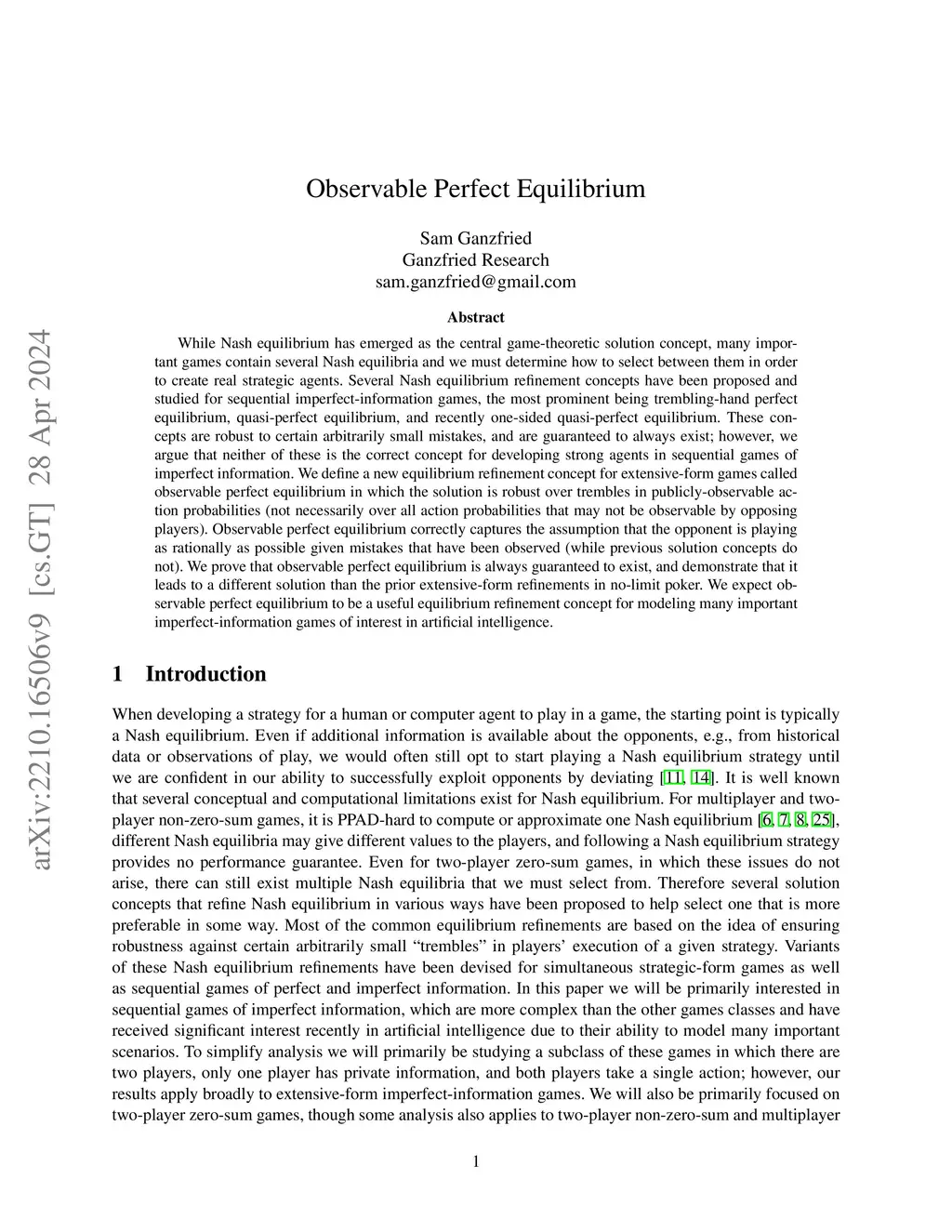 While Nash equilibrium has emerged as the central game-theoretic solution concept, many important games contain several Nash equilibria and we must determine how to select between them in order to create real strategic agents. Several Nash equilibrium refinement concepts have been proposed and studied for sequential imperfect-information games, the most prominent being trembling-hand perfect equilibrium, quasi-perfect equilibrium, and recently one-sided quasi-perfect equilibrium. These concepts are robust to certain arbitrarily small mistakes, and are guaranteed to always exist; however, we argue that neither of these is the correct concept for developing strong agents in sequential games of imperfect information. We define a new equilibrium refinement concept for extensive-form games called observable perfect equilibrium in which the solution is robust over trembles in publicly-observable action probabilities (not necessarily over all action probabilities that may not be observable by opposing players). Observable perfect equilibrium correctly captures the assumption that the opponent is playing as rationally as possible given mistakes that have been observed (while previous solution concepts do not). We prove that observable perfect equilibrium is always guaranteed to exist, and demonstrate that it leads to a different solution than the prior extensive-form refinements in no-limit poker. We expect observable perfect equilibrium to be a useful equilibrium refinement concept for modeling many important imperfect-information games of interest in artificial intelligence.