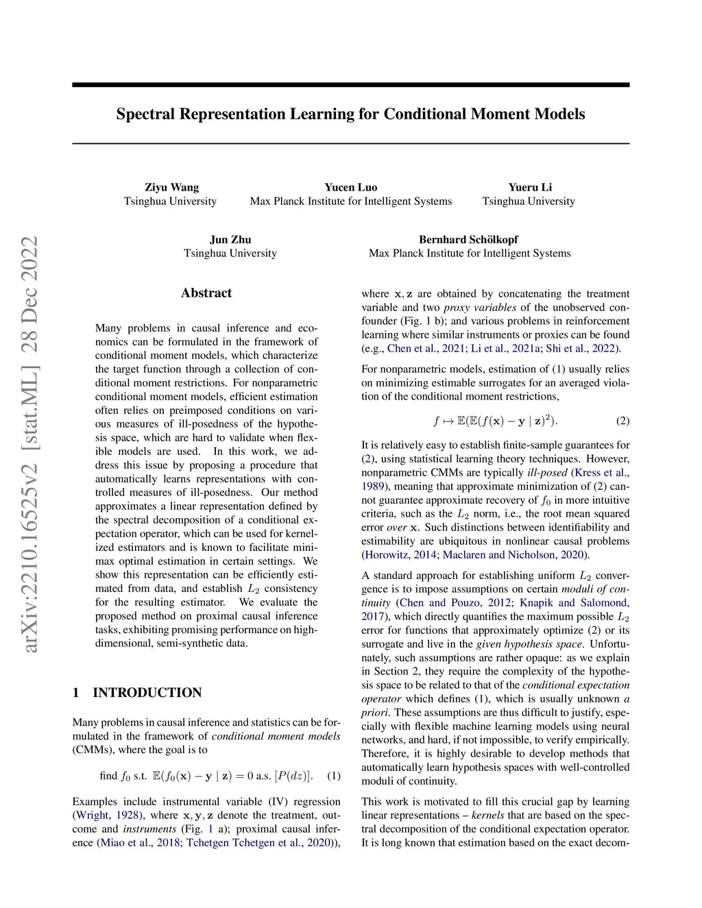 Many problems in causal inference and economics can be formulated in the framework of conditional moment models, which characterize the target function through a collection of conditional moment restrictions. For nonparametric conditional moment models, efficient estimation often relies on preimposed conditions on various measures of ill-posedness of the hypothesis space, which are hard to validate when flexible models are used. In this work, we address this issue by proposing a procedure that automatically learns representations with controlled measures of ill-posedness. Our method approximates a linear representation defined by the spectral decomposition of a conditional expectation operator, which can be used for kernelized estimators and is known to facilitate minimax optimal estimation in certain settings. We show this representation can be efficiently estimated from data, and establish L2 consistency for the resulting estimator. We evaluate the proposed method on proximal causal inference tasks, exhibiting promising performance on high-dimensional, semi-synthetic data.