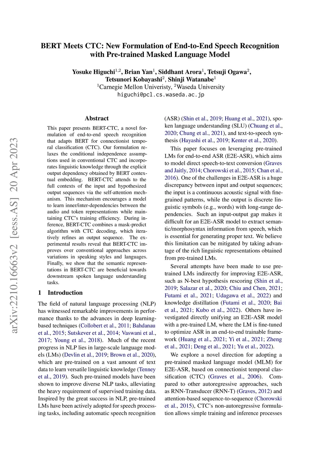BERT Meets CTC: New Formulation of End-to-End Speech Recognition with