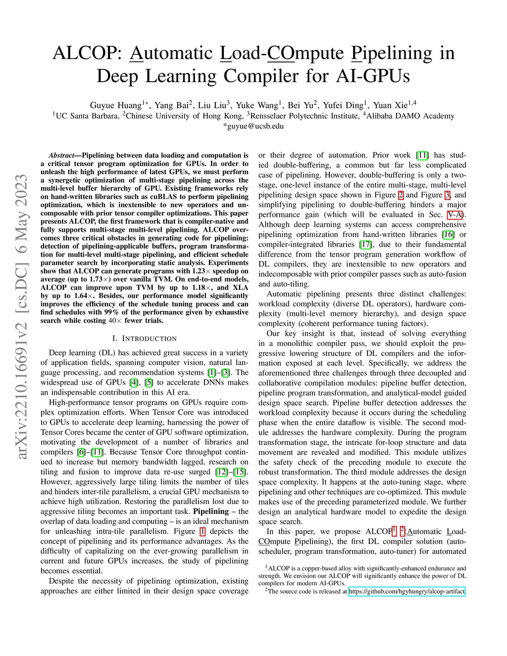 ALCOP: Automatic Load-Compute Pipelining in Deep Learning Compiler for