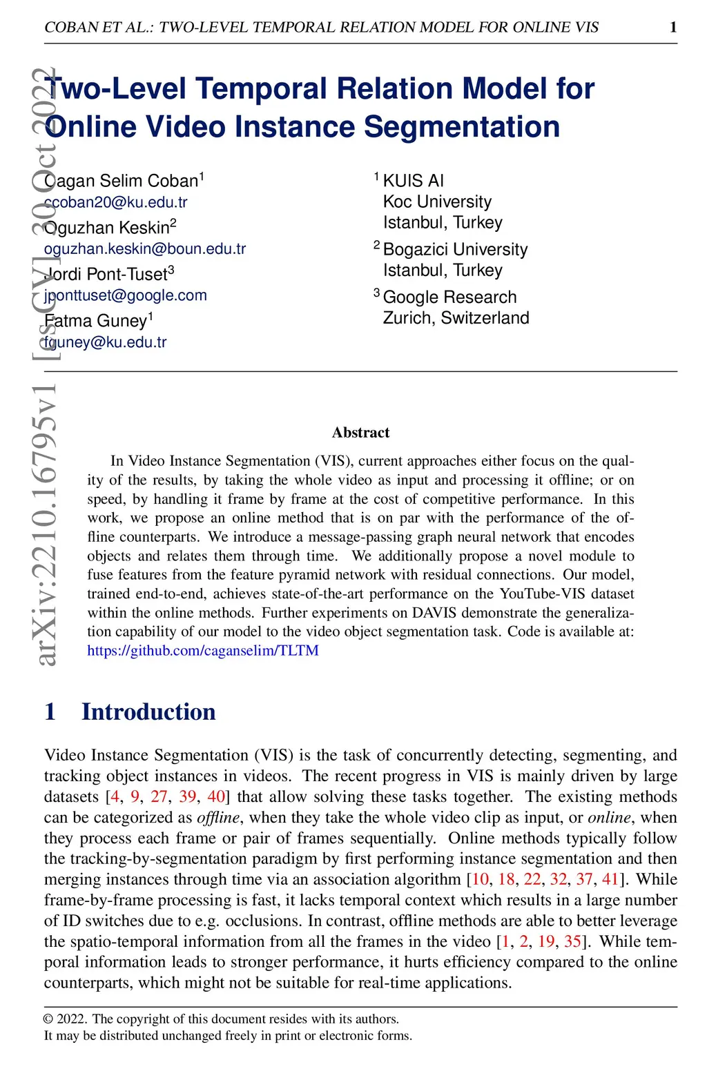 Two-Level Temporal Relation Model for Online Video Instance Segmentation
