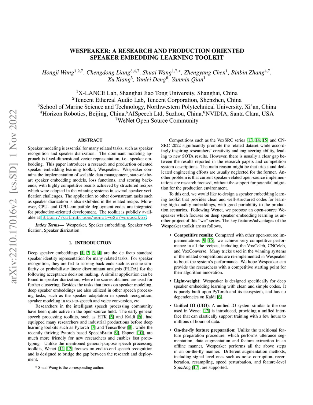 Wespeaker: A Research and Production oriented Speaker Embedding Learning