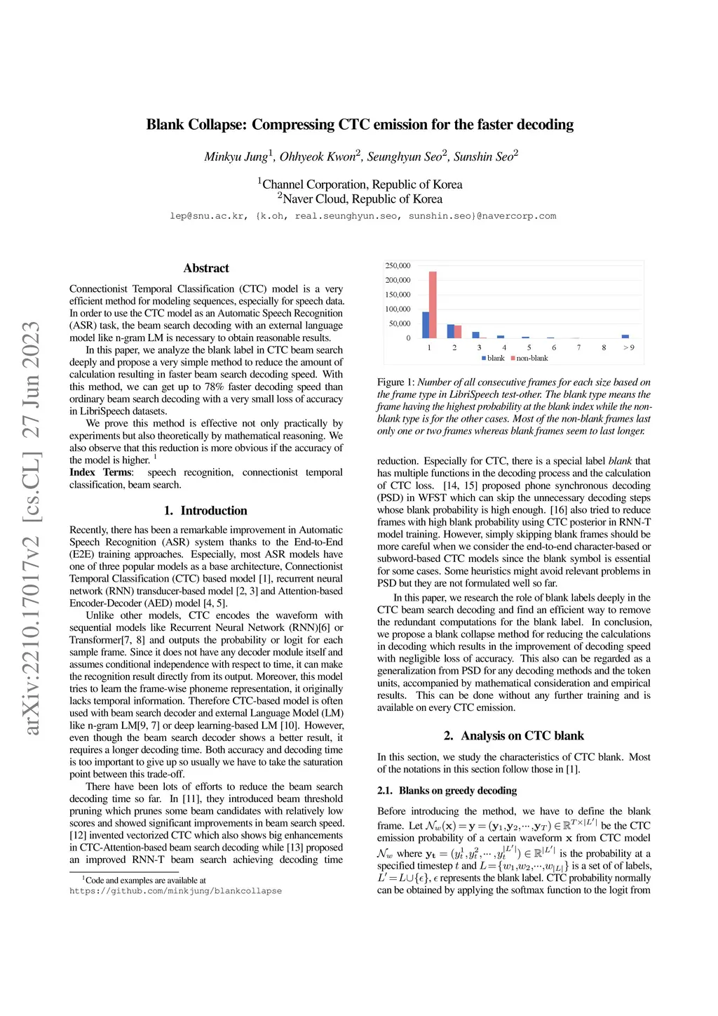 Blank Collapse: Compressing CTC emission for the faster decoding