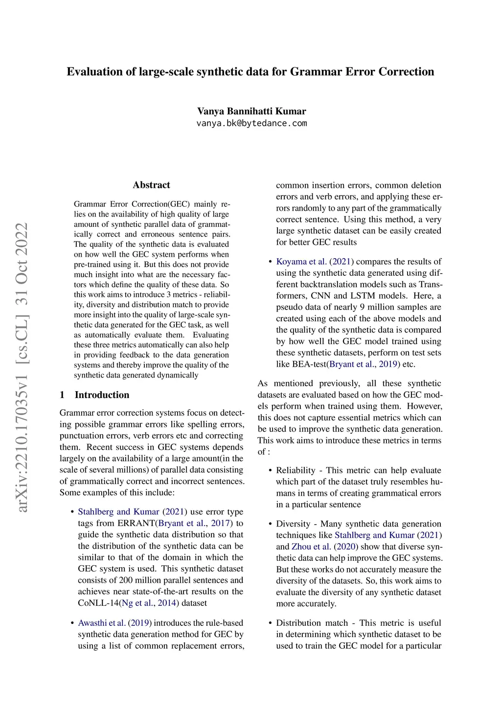 Evaluation of large-scale synthetic data for Grammar Error Correction