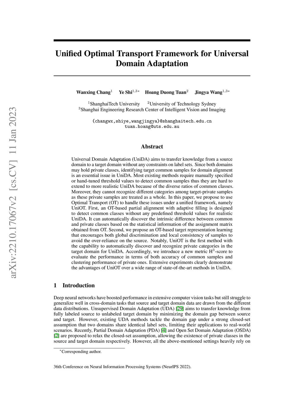 Unified Optimal Transport Framework for Universal Domain Adaptation