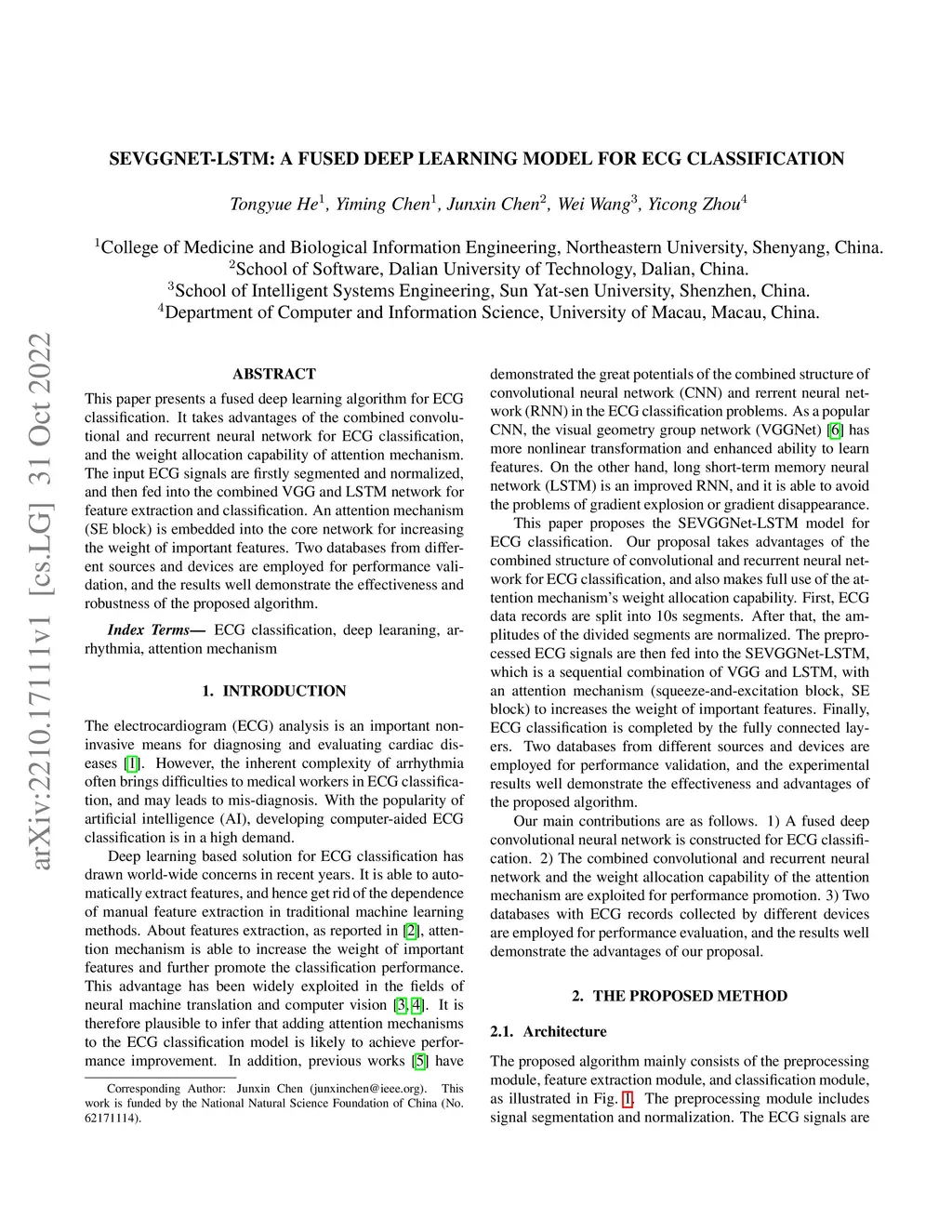 SEVGGNet-LSTM: a fused deep learning model for ECG classification