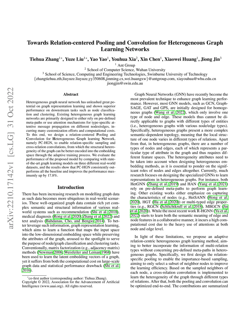 Heterogeneous graph neural network has unleashed great potential on graph representation learning and shown superior performance on downstream tasks such as node classification and clustering. Existing heterogeneous graph learning networks are primarily designed to either rely on pre-defined meta-paths or use attention mechanisms for type-specific attentive message propagation on different nodes/edges, incurring many customization efforts and computational costs. To this end, we design a relation-centered Pooling and Convolution for Heterogeneous Graph learning Network, namely PC-HGN, to enable relation-specific sampling and cross-relation convolutions, from which the structural heterogeneity of the graph can be better encoded into the embedding space through the adaptive training process. We evaluate the performance of the proposed model by comparing with state-of-the-art graph learning models on three different real-world datasets, and the results show that PC-HGN consistently outperforms all the baseline and improves the performance maximumly up by 17.8%.