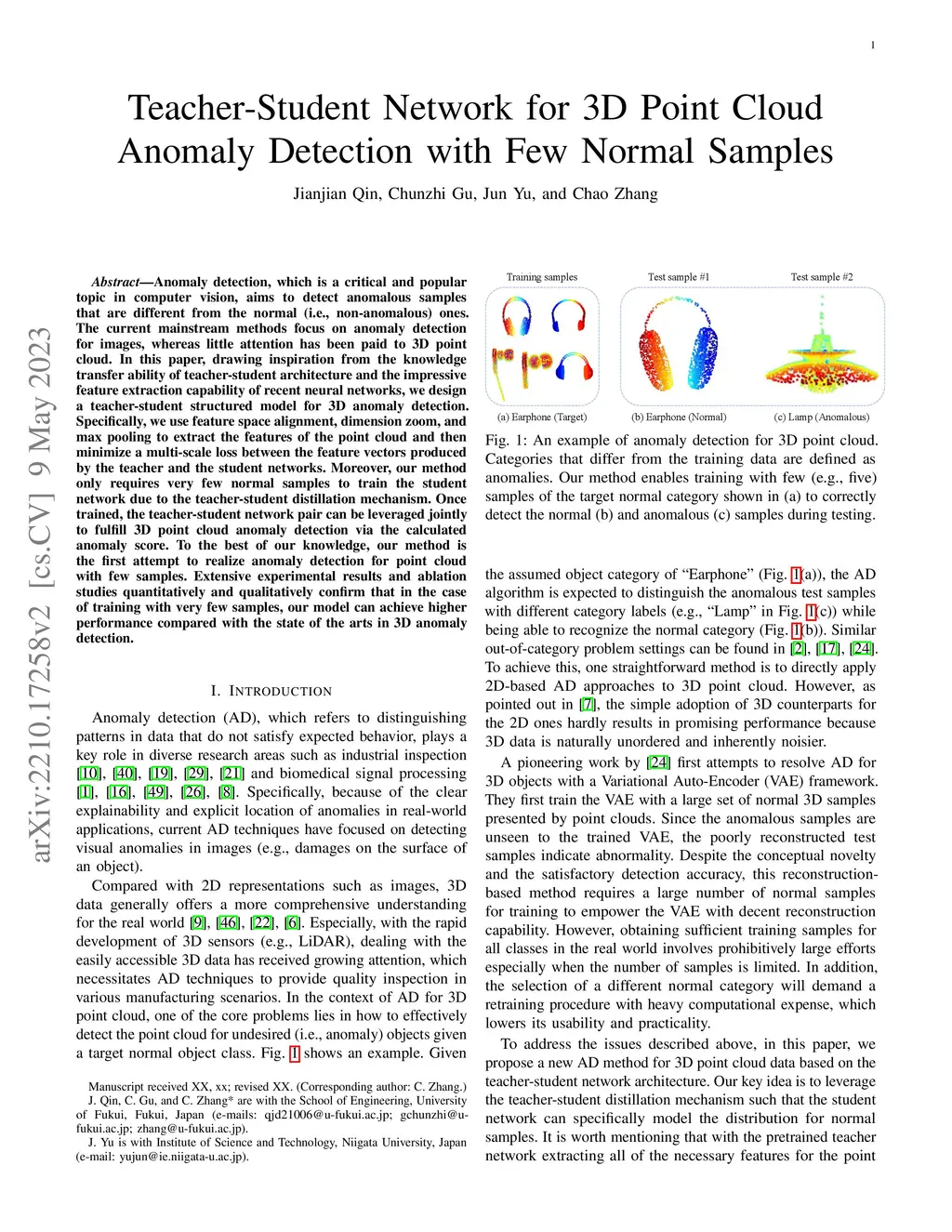 Teacher-Student Network for 3D Point Cloud Anomaly Detection with Few