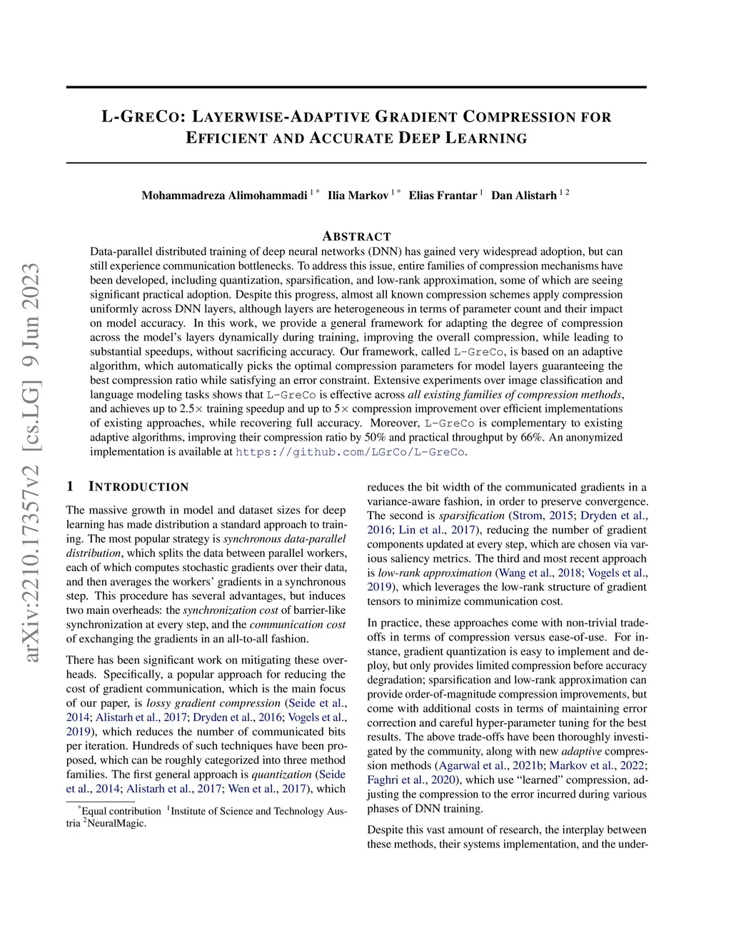 L-GreCo: Layerwise-Adaptive Gradient Compression for Efficient and