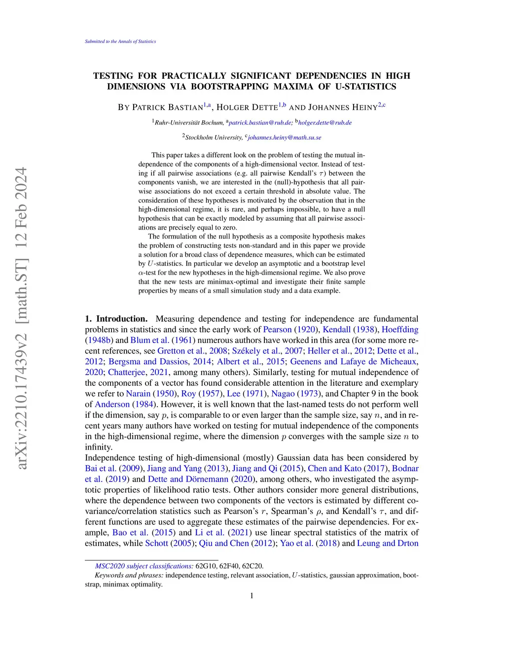This paper takes a different look on the problem of testing the mutual independence of the components of a high-dimensional vector. Instead of testing if all pairwise associations (e.g. all pairwise Kendall's ) between the components vanish, we are interested in the (null)-hypothesis that all pairwise associations do not exceed a certain threshold in absolute value. The consideration of these hypotheses is motivated by the observation that in the high-dimensional regime, it is rare, and perhaps impossible, to have a null hypothesis that can be exactly modeled by assuming that all pairwise associations are precisely equal to zero. The formulation of the null hypothesis as a composite hypothesis makes the problem of constructing tests non-standard and in this paper we provide a solution for a broad class of dependence measures, which can be estimated by -statistics. In particular we develop an asymptotic and a bootstrap level -test for the new hypotheses in the high-dimensional regime. We also prove that the new tests are minimax-optimal and investigate their finite sample properties by means of a small simulation study and a data example.