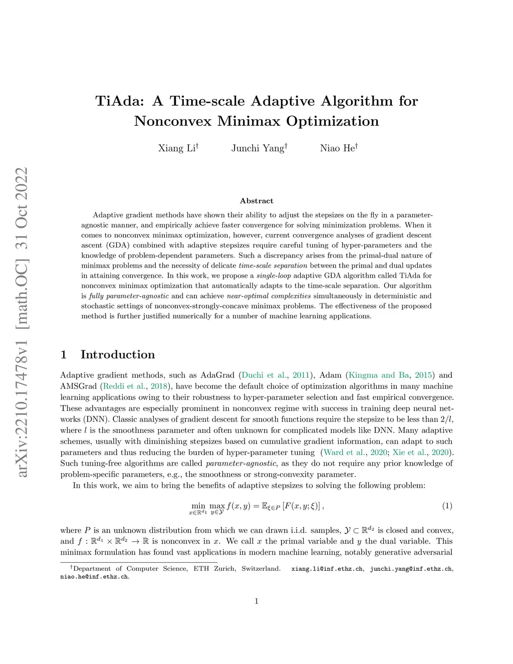 TiAda: A Time-scale Adaptive Algorithm for Nonconvex Minimax Optimization
