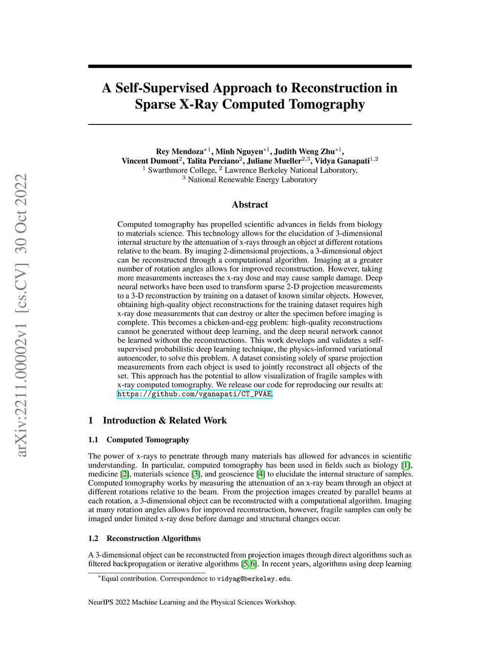 A Self-Supervised Approach to Reconstruction in Sparse X-Ray Computed